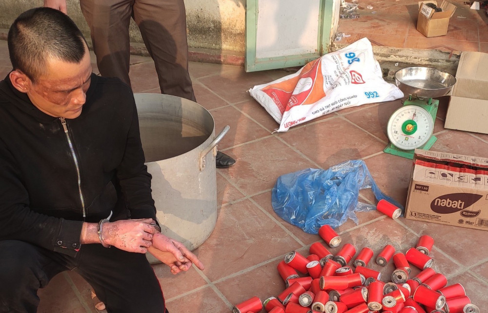 Trước đó, hồi 15h00’ ngày 29/01/2021, tại nhà Hoàng Xuân Nhị, sinh năm 1985, ở thôn Chàm, xã Quyết Tiến, huyện Tiên Lãng, Hải Phòng, Công an huyện Tiên Lãng bắt quả tang Nhị có hành vi sản xuất hàng cấm (pháo nổ).