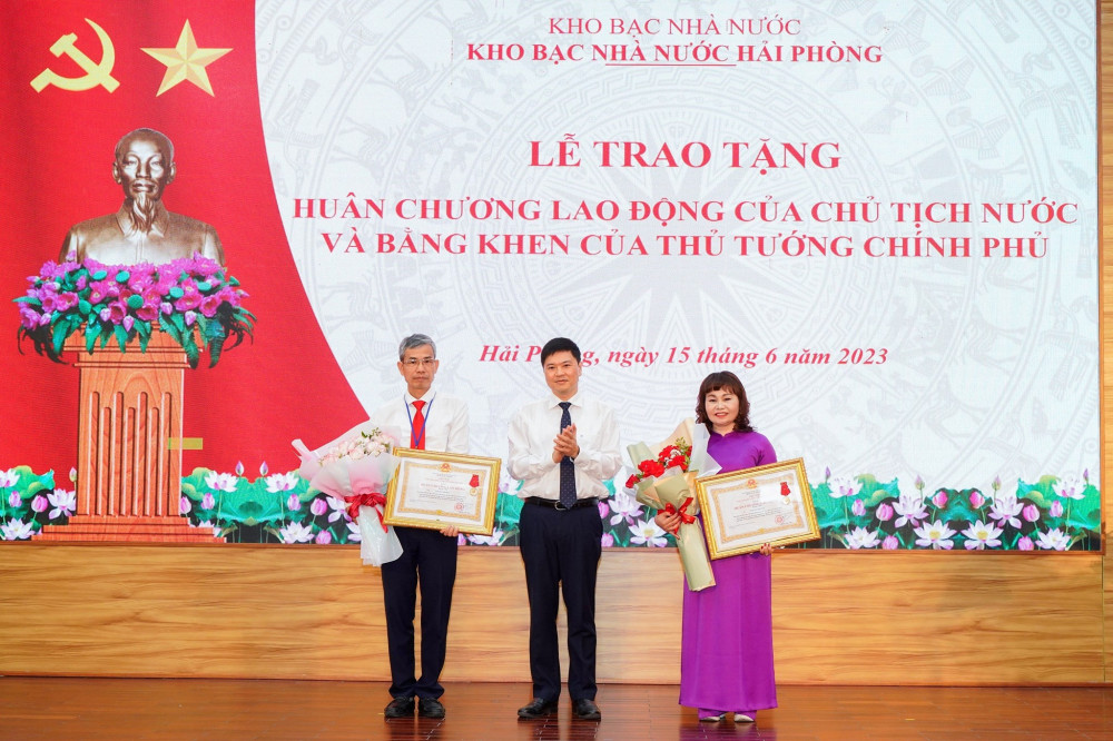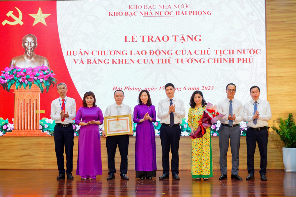 Chiều 15/6, Kho bạc Nhà nước (KBNN) Hải Phòng tổ chức Lễ công bố Quyết định trao Huân chương Lao động hạng Nhì và Sơ kết công tác 6 tháng đầu năm, triển khai nhiệm vụ 6 tháng cuối năm 2023. Tới dự có Phó Tổng Giám đốc KBNN Trần Thị Huệ; Phó Chủ tịch UBND thành phố Hoàng Minh Cường; cùng đại diện lãnh đạo các Ban, ngành thành phố.