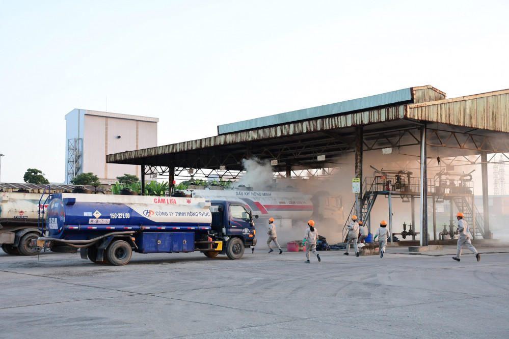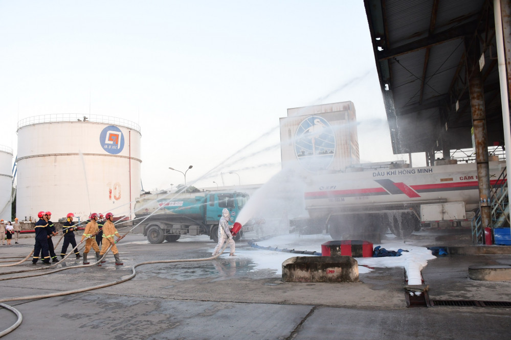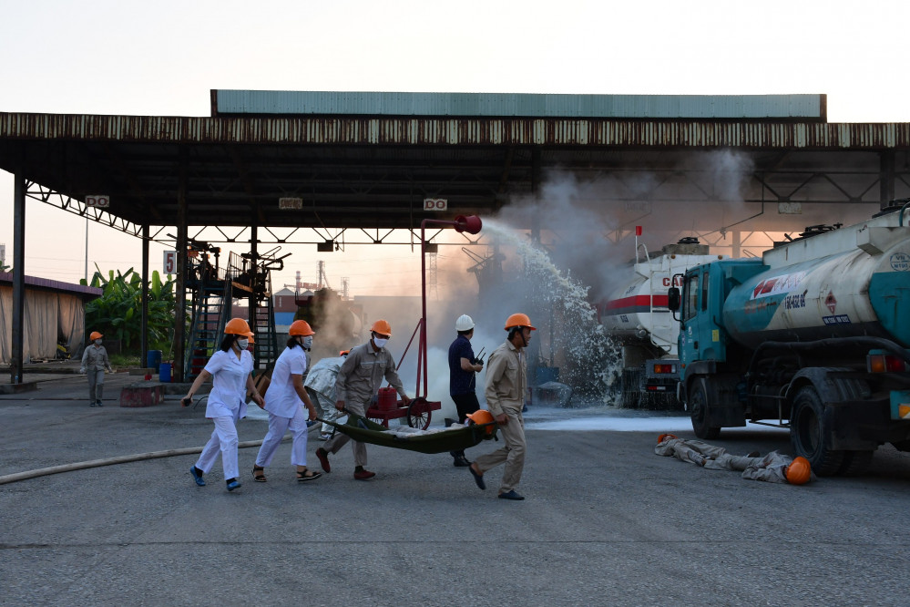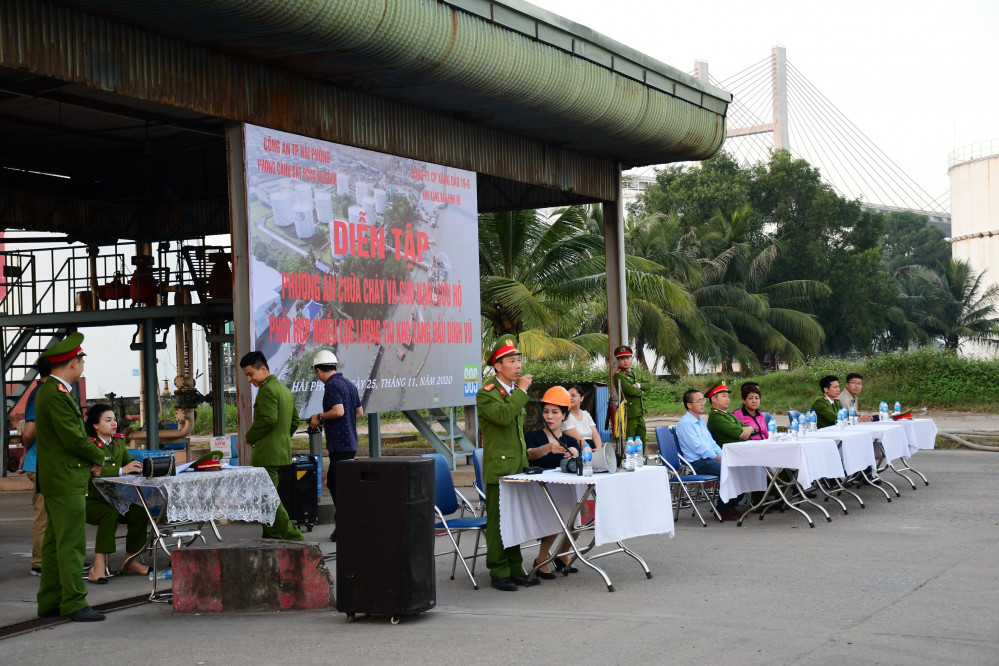 Tình huống giả định, hồi 16h00′ ngày 25/11/2020 xảy ra cháy tại khu vực giàn xuất xăng dầu số 2 thuộc Kho xăng dầu hàng không Đình Vũ thuộc Công ty cổ phần 19-9.