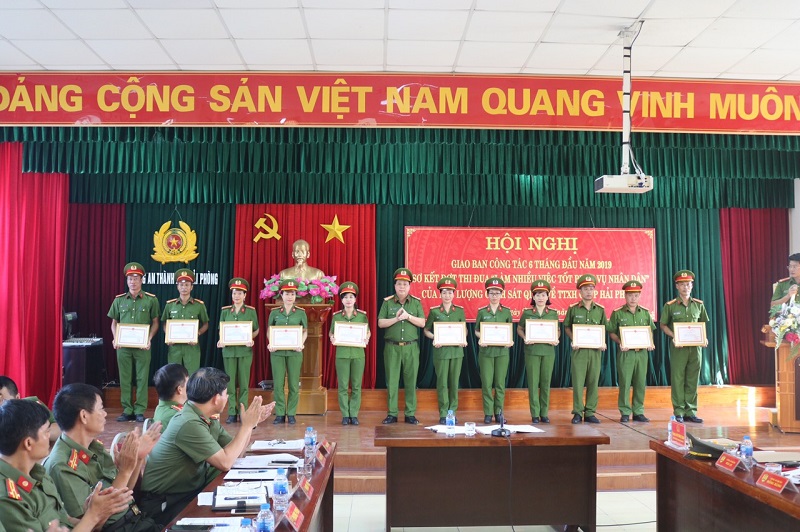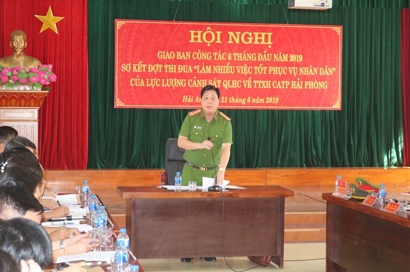 Chiều 21-6, tại trụ sở CAQ Hải An, Khối Cảnh sát QLHC về TTXH CATP tổ chức hội nghị giao ban công tác 6 tháng đầu năm 2019, sơ kết đợt thi đua “Làm nhiều việc tốt phục vụ nhân dân” của lực lượng Cảnh sát QLHC về TTXH. Thượng tá Bùi Trung Thành, Phó Giám đốc CATP dự và chủ trì hội nghị.