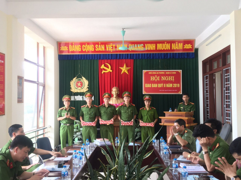 Sáng 5-6, khối CAP quận Lê Chân tổ chức giao ban xây dựng lực lượng quý II/2019. Phó trưởng CAQ Lê Chân, Trung tá Vũ Văn Thưởng chủ trì.
