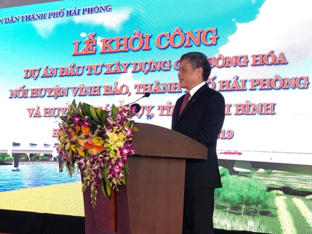 Phát biểu tại Lễ khởi công, đồng chí Nguyễn Xuân Bình, Ủy viên Ban Thường vụ Thành ủy, Phó Chủ tịch UBND thành phố nhấn mạnh, trong những ngày tháng 5 lịch sử, kỷ niệm Ngày giải phóng miền Nam thống nhất đất nước, Ngày Quốc tế Lao động 1/5, Ngày kỷ niệm chiến thắng lịch sử Điện Biên Phủ và Kỷ niệm 129 năm Ngày sinh Chủ tịch Hồ Chí Minh kính yêu, nhân dân hai địa phương rất vui mừng phấn khởi trước những thay đổi to lớn của quê hương, đất nước. Với người dân Hải Phòng có niềm vui riêng, thành phố kỷ niệm 64 năm Ngày giải phóng Hải Phòng. Trong không khí ấy, lãnh đạo và nhân dân thành phố vui mừng có mặt để chứng kiến một sự kiện lớn có ý nghĩa đặc biệt quan trọng.