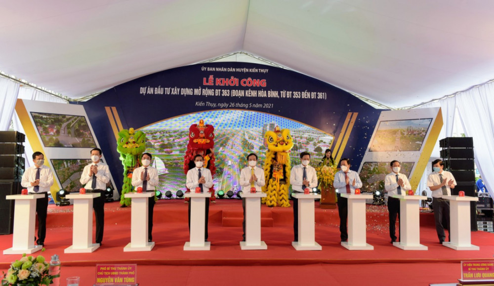 Nhấn mạnh phát biểu tại Lễ khởi công Dự án, Chủ tịch UBND thành phố Nguyễn Văn Tùng cho biết, nhằm góp phần xây dựng huyện Kiến Thụy trở thành đơn vị hành chính quận trước năm 2030 như mục tiêu đề ra tại Nghị quyết Đại hội Đảng bộ thành phố lần thứ XVI, thành phố đã quyết định thực hiện Dự án Đầu tư xây dựng mở rộng ĐT 363 (đoạn kênh Hòa Bình, từ ĐT 353 đến ĐT 361).