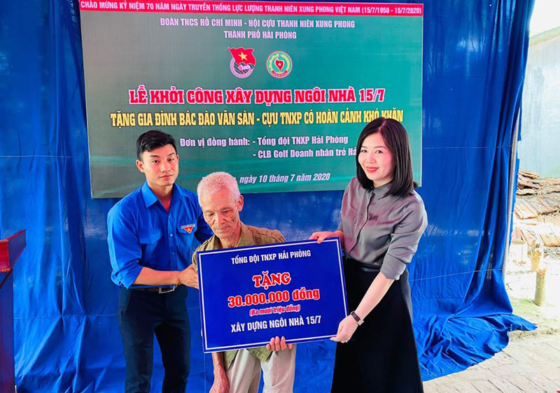 Chiều 10/7, tại thôn Văn Úc, xã Hùng Thắng, huyện Tiên Lãng, Thành đoàn Hải Phòng phối hợp với Hội Cựu thanh niên xung phong (TNXP) thành phố tổ chức Lễ Khởi công xây dựng Ngôi nhà 15/7 tặng gia đình ông Đào Văn Sàn, Cựu thanh niên xung phong có hoàn cảnh khó khăn trên địa bàn huyện Tiên Lãng.