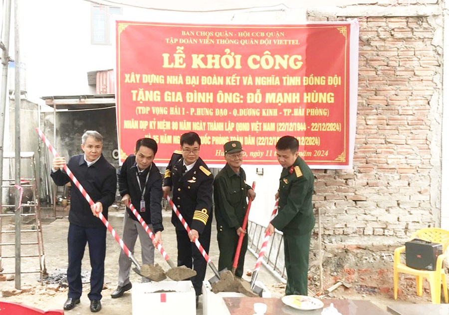 Sáng 11/3, Ban CHQS quận Dương Kinh phối hợp với Hội Cựu Chiến binh quận, Tập đoàn Viễn thông Quân đội Viettel – Chi nhánh Dương Kinh tổ chức khởi công xây dựng nhà Đại đoàn kết và Nhà nghĩa tình đồng đội cho gia đình Cựu chiến binh Đỗ Mạnh Hùng, thường trú tại phường Hưng Đạo, quận Dương Kinh.