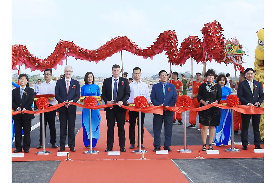 Đồng chí Nguyễn Văn Tùng, Chủ tịch UBND thành phố và ông Geert Bourgeois, Thủ hiến Chính phủ kiêm Bộ trưởng Ngoại giao và Di sản vật thể vùngFlanders(Vương quốc Bỉ) cùng chủ đầu tư cắt băng khởi động Khu công nghiệp Deep C Hải Phòng 2.