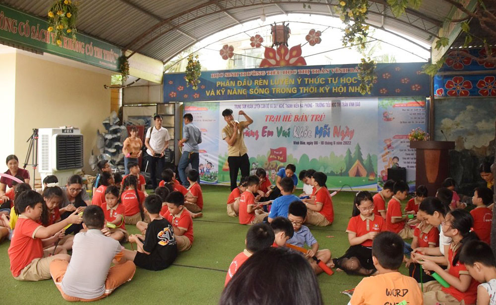 Chiều 6/6, tại Trường Tiểu học thị trấn Vĩnh Bảo (huyện Vĩnh Bảo), Trung tâm Huấn luyện cán bộ và Dạy nghề thanh niên Hải Phòng triển khai mô hình Trại hè bán trú “Cùng em vui khỏe mỗi ngày”.