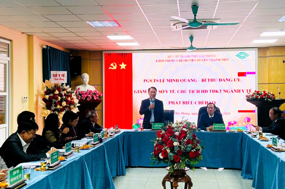 Phát biểu chỉ đạo Hội nghị, đồng chí PGS.TS Lê Minh Quang, Giám đốc Sở Y tế, Chủ tịch Hội đồng Thi đua khen thưởng ngành Y Tế Hải Phòng đã biểu dương những kết quả mà các Bệnh viện trong khối đạt được trong năm 2023, khắc phục khó khăn, thực hiện có hiệu quả các phong trào thi đua gắn với nhiệm vụ chính trị của từng đơn vị, từng bước nâng cao chất lượng khám chữa bệnh, tạo sự hài lòng của người bệnh đối với Bệnh viện.