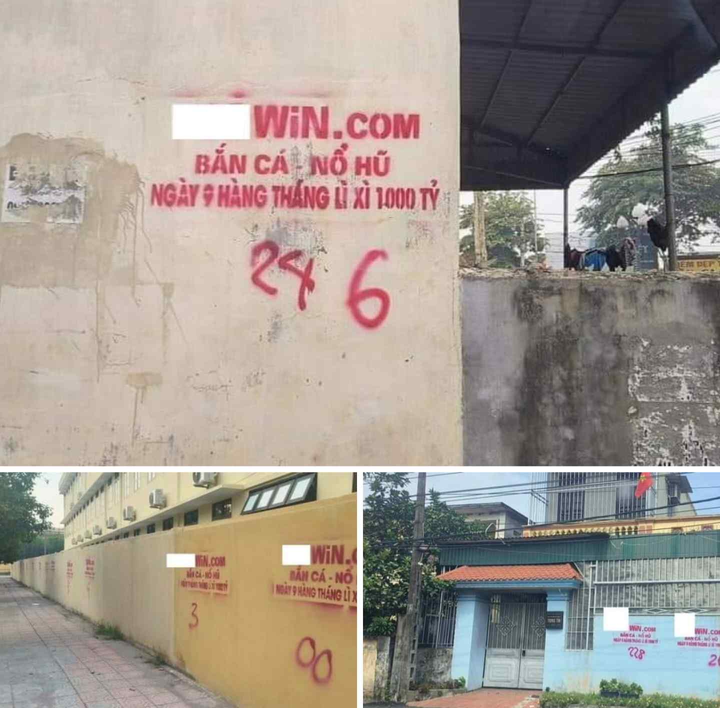 Thậm chí, nhóm đối tượng còn xịt sơn đỏ tràn lan quảng cáo cờ bạc, cá độ online lên cả các bức tường bao quanh các trụ sở cơ quan nhà nước, trường học…