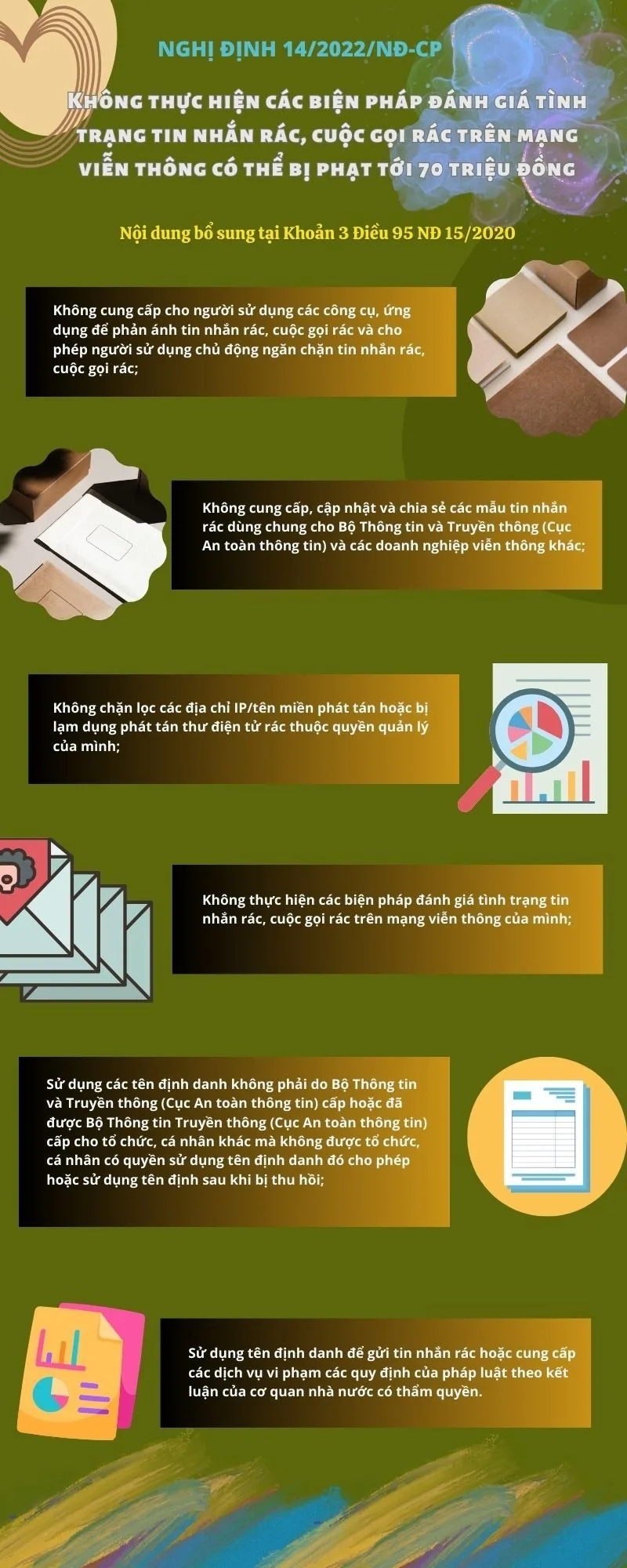 – Không thực hiện các biện pháp đánh giá tình trạng tin nhắn rác, cuộc gọi rác trên mạng viễn thông của mình;