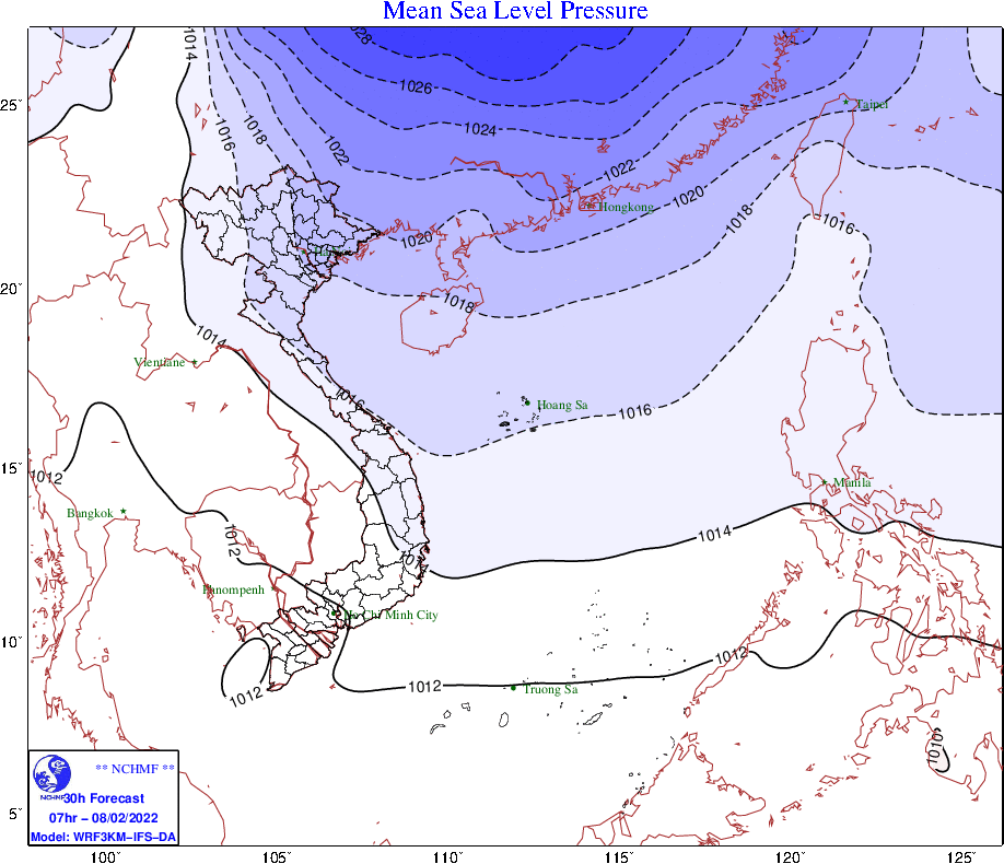 Từ trưa chiều ngày mai (08/02), trong đất liền Bắc Bộ gió Đông Bắc mạnh dần lên cấp 3, vùng ven biển cấp 3-4; ở vịnh Bắc Bộ gió Đông Bắc cấp 5, có lúc cấp 6, giật cấp 7, biển động, sóng biển cao từ 2,0-3,0m; khu vực Bắc Biển Đông (bao gồm cả vùng biển quần đảo Hoàng Sa) có gió Đông Bắc mạnh dần lên cấp 6, giật cấp 7-8, biển động, sóng biển cao từ 2,0-4,0m.