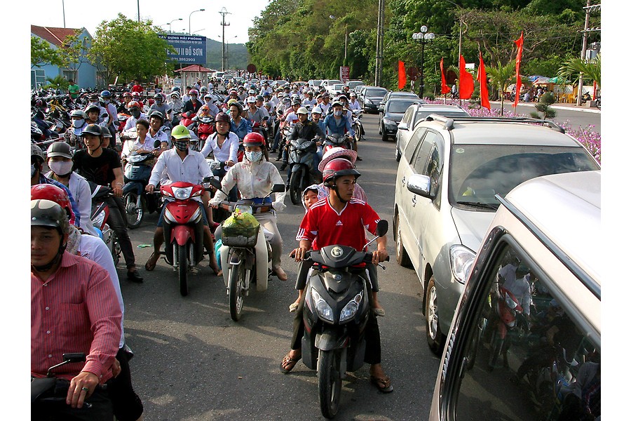 Hàng vạn du khách cùng phương tiện đổ về khu du lịch Đồ Sơn trong những ngày cao điểm mùa du lịch hè.