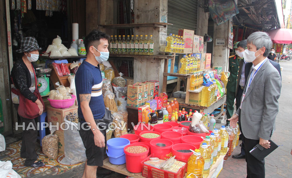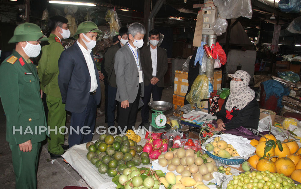 Bí thư Quận ủy Lê Chân thăm hỏi các tiểu thương tại chợ An Dương.