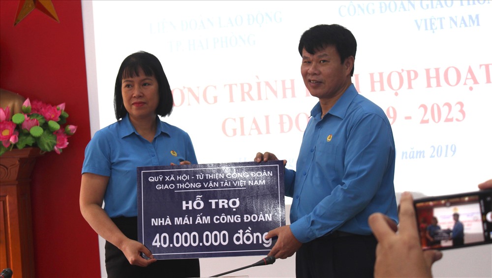 Cũng trong dịp này, LĐLĐ TP.Hải Phòng, Công đoàn Giao thông Vận tải Việt Nam trao kinh phí hỗ trợ xây dựng nhà “Mái ấm Công đoàn” cho đoàn viên thuộc Công đoàn ngành Giao thông Vận tải Hải Phòng.