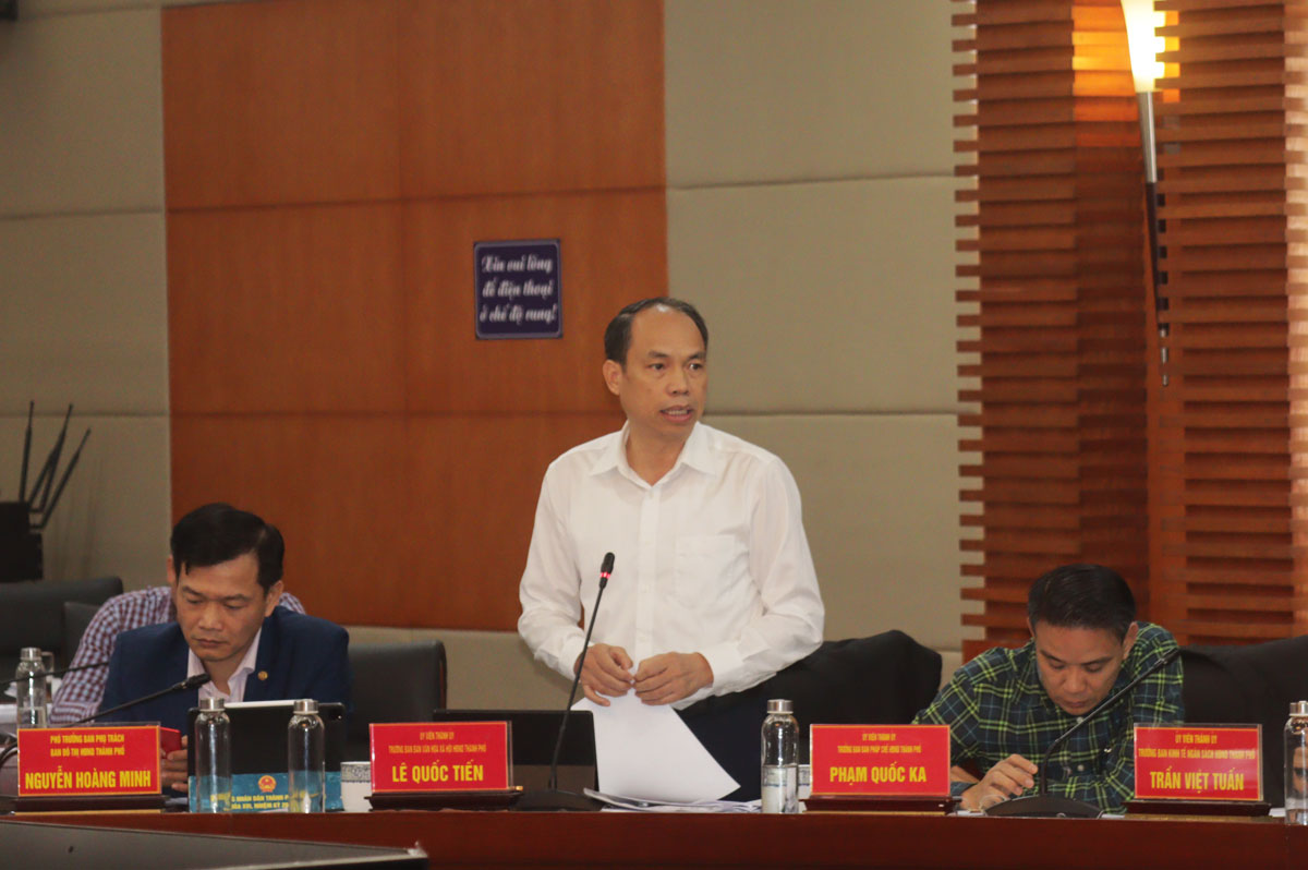 Tại cuộc họp, đại diện các Ban của HĐND thành phố báo cáo sơ bộ kết quả thẩm tra các hồ sơ dự thảo Nghị quyết và cơ bản thống nhất với nội dung các dự thảo Nghị quyết bảo đảm căn cứ, trình tự, thủ tục theo quy định của pháp luật. Đồng thời đề nghị cơ quan soạn thảo bổ sung vào dự thảo Nghị quyết một số nội dung đảm bảo chặt chẽ, chất lượng. Đại diện lãnh đạo các Sở, ngành liên quan cũng giải trình, làm rõ một số nội dung cụ thể.