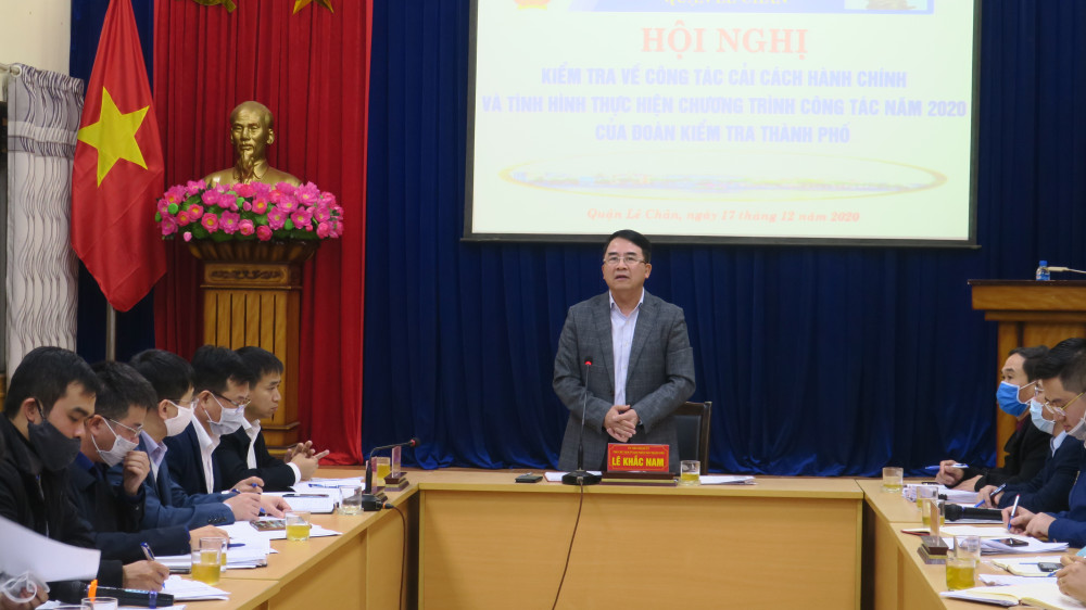 Phát biểu tại buổi kiểm tra, Phó Chủ tịch UBND thành phố Lê Khắc Nam đánh giá quận Lê Chân đã nỗ lực hoàn thành các chỉ tiêu nhiệm vụ thành phố giao, quyết liệt triển khai công tác phòng chống dịch COVID-19, cố gắng cao trong công tác chỉnh trang đô thị tại đường Hồ Sen-Cầu Rào 2 và tuyến đường quanh khu trung tâm thương mại AEON, công tác an sinh xã hội được quan tâm thực hiện tốt, quốc phòng-an ninh được đảm bảo.