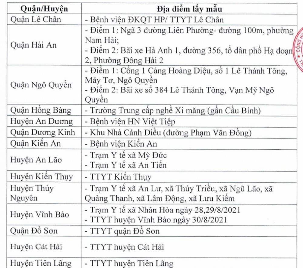 Thời gian lấy mẫu cho lái xe, phụ xe từ 8h00 ngày 27/8 đến 17h00 ngày 31/8, tại các địa điểm: