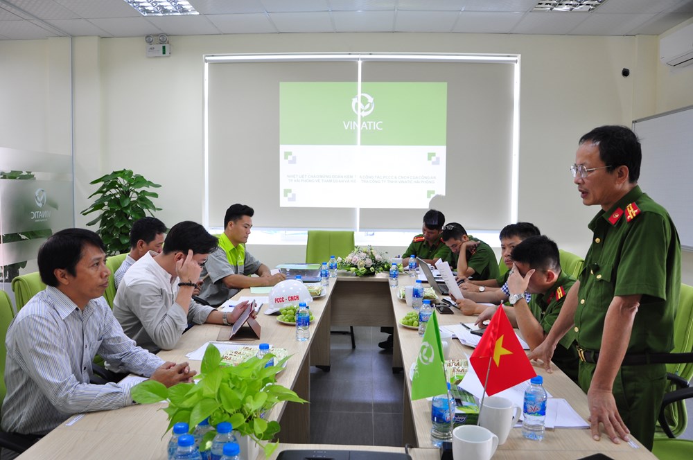 Đoàn công tác của CATP vừa kiểm tra công tác thực hiện pháp luật về phòng cháy, chữa cháy và cứu nạn, cứu hộ tại Công ty TNHH Vinatic Hải Phòng, trụ sở ở Khu Công nghiệp Nam cầu Kiền, huyện Thủy Nguyên, Hải Phòng.