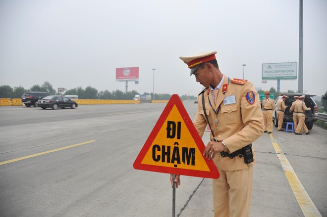 Cục CSGT triển khai lực lượng, trang thiết bị để kiểm soát tất cả các phương tiện đi vào cao tốc. Ngay sau khi phương tiện qua trạm thu phí, lực lượng chức năng sẽ yêu cầu đi chậm và dừng trước chốt để đo nồng độ cồn.