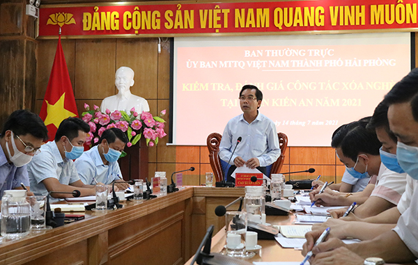 Chiều 14/7, đoàn công tác do đồng chí Cao Xuân Liên, Ủy viên Ban Thường vụ Thành ủy, Chủ tịch Ủy ban MTTQ Việt Nam thành phố làm Trưởng đoàn kiểm tra, đánh giá kết quả thực hiện công tác xóa nghèo bền vững năm 2021 tại quận Kiến An.