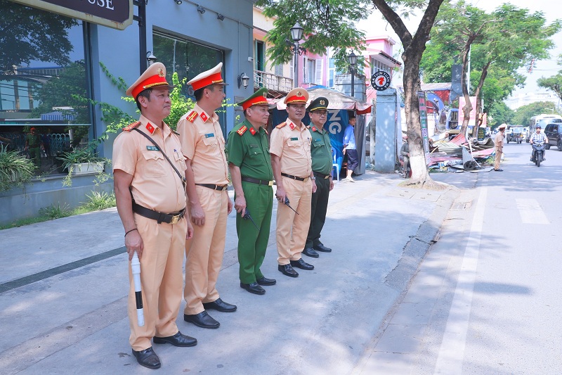 Lãnh đạo Phòng 8, Cục CSGT đường bộ-đường sắt (Bộ Công an), lãnh đạo Phòng CSGT-CATP Hải Phòng và lãnh đạo Công an quận Hồng Bàng cùng có mặt tại hiện trường, chỉ đạo công tác kiểm tra, xử lý vi phạm.