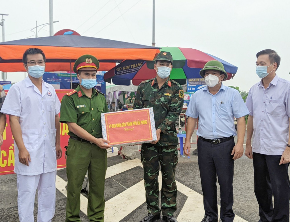 Sáng 22/7, Phó Chủ tịch UBND thành phố Nguyễn Đức Thọ cùng đại diện các Sở, ngành chức năng và địa phương liên quan thực địa kiểm tra tình hình hoạt động của các Chốt kiểm soát dịch bệnh COVID-19 liên ngành thành phố tại cầu Dinh, xã An Sơn, huyện Thủy Nguyên; khu vực ga Dụ Nghĩa, đường 5A và Chốt kiểm soát QL.17B, phía huyện An Dương, khu vực tiếp giáp huyện Kim Thành, tỉnh Hải Dương.