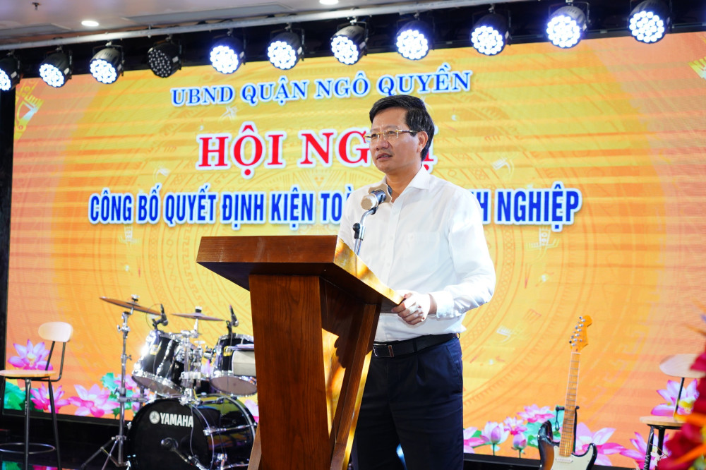 Phát biểu tại Hội nghị, Phó Chủ tịch Thường trực UBND thành phố Lê Anh Quân, đánh giá cao quyết định kiện toàn Hội Doanh nghiệp quận Ngô Quyền, đồng thời khẳng định vai trò của doanh nghiệp trong phát triển kinh tế xã hội thành phố nói chung và quận Ngô Quyền nói riêng. Phó Chủ tịch Thường trực, mong muốn Hội Doanh nghiệp quận Ngô Quyền tiếp tục quy tụ, tập hợp các doanh nghiệp, hội viên cùng phối hợp, liên kết xây dựng Hội phát triển vững mạnh, xứng đáng ngôi nhà chung của doanh nghiệp trên địa bàn quận.