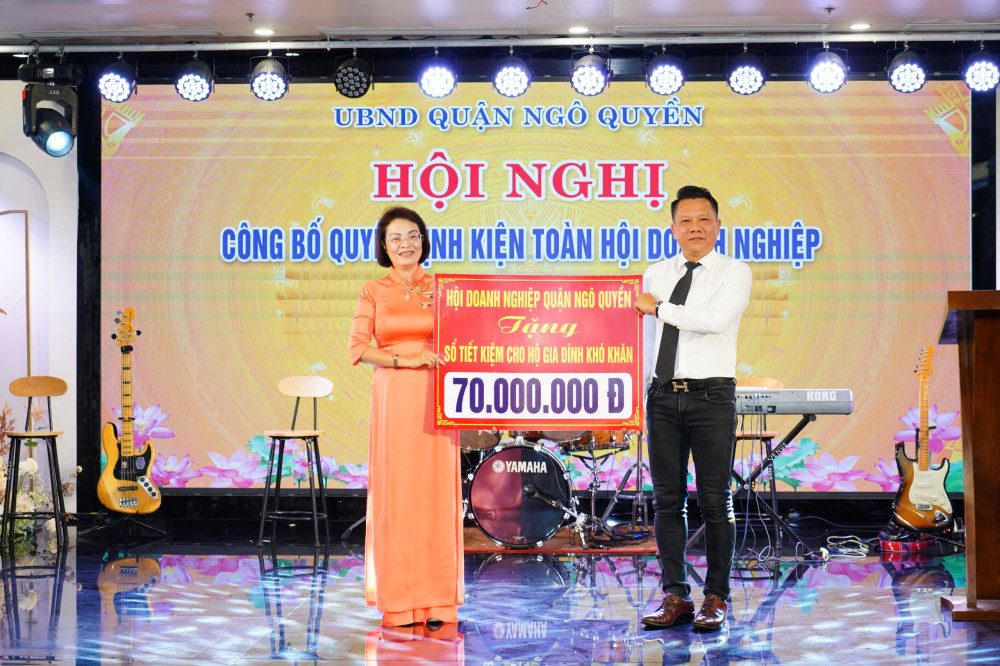Nhân dịp này, Hội Doanh nghiệp quận Ngô Quyền trao 70 triệu đồng tặng sổ tiết kiệm cho các gia đình có hoàn cảnh khó khăn trên địa bàn.