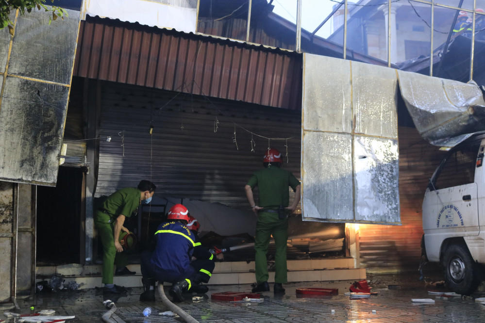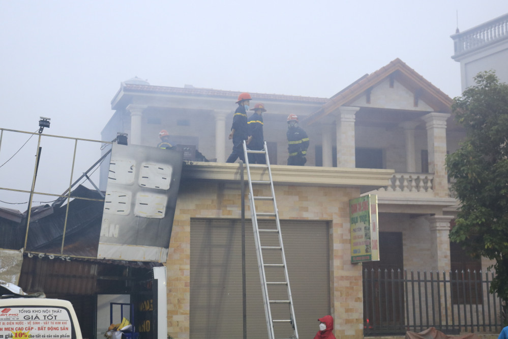 Anh T. mới thuê từ đầu tháng 5/2023 để bán vật tư kim khí điện máy. Thời điểm xảy ra vụ cháy có mưa giông song bên trong cửa hàng chứa nhiều bao bì, vật liệu là gỗ, xốp… nên đám cháy bùng phát dữ dội, tỏa nhiều khói đen đặc.