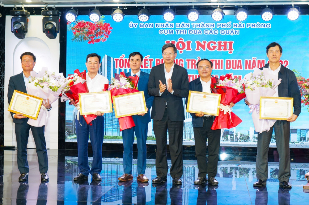 Nhân dịp này, UBND thành phố tặng cờ thi đua cho nhân dân và cán bộ quận Hải An về thành tích hoàn thành xuất sắc, toàn diện nhiệm vụ công tác trong phong trào thi đua cụm các quận năm 2022. Bằng khen của Chủ tịch UBND thành phố tặng nhân dân và cán bộ quận Kiến An, Dương Kinh, Đồ Sơn, Hồng Bàng, Lê Chân về thành tích xuất sắc một số mặt công tác. Quận Ngô Quyền được đề nghị tặng cờ thi đua của Chính phủ./.