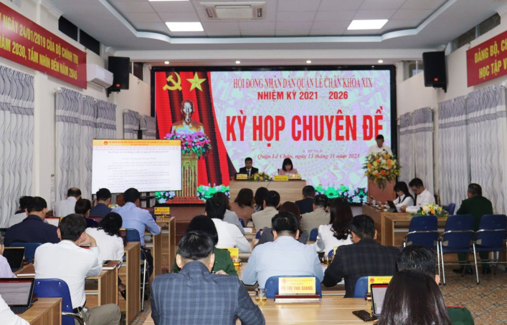 Chiều 13/11, HÐND quận Lê Chân tổ chức Kỳ họp chuyên đề HĐND quận khóa XIX, nhiệm kỳ 2021-2026 nhằm xem xét, quyết định một số nội dung thuộc thẩm quyền của HĐND quận.
