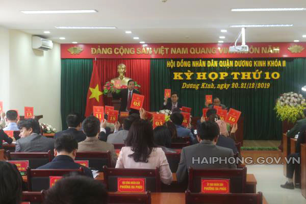 HĐND quận Dương Kinh vừa tổ chức Kỳ họp thứ 10 HĐND quận khóa II, nhiệm kỳ 2016 – 2021 nghe báo cáo về tình hình và kết quả thực hiện nhiệm vụ kinh tế – xã hội, quốc phòng – an ninh của quận năm 2019; chỉ tiêu, nhiệm vụ và giải pháp năm 2020 cùng một số nội dung quan trọng khác.