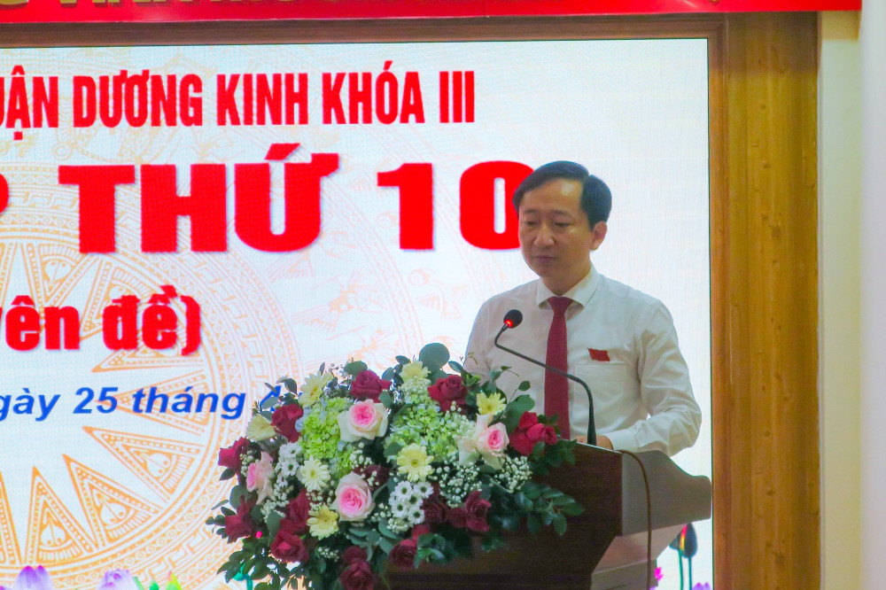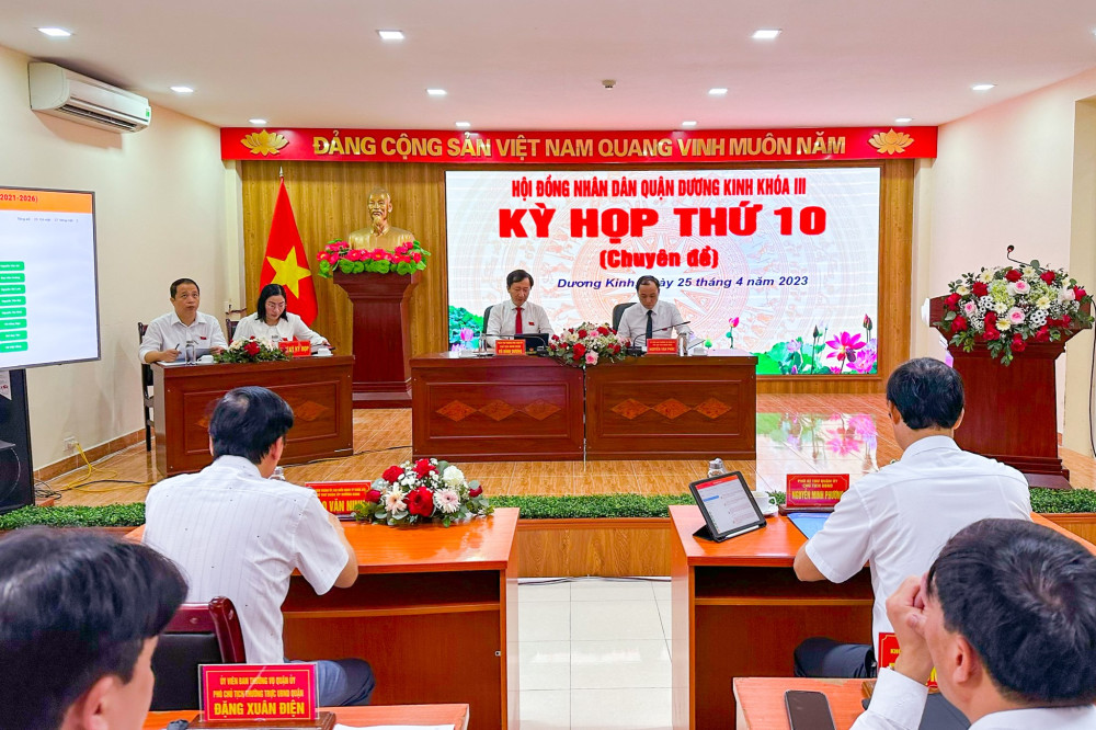 Sáng 25/4, HĐND quận Dương Kinh khóa III (nhiệm kỳ 2021-2026) tổ chức Kỳ họp thứ 10 (Kỳ họp chuyên đề) xem xét, quyết định một số vấn đề quan trọng phát sinh cần sớm được thông qua để kịp thời đáp ứng yêu cầu nhiệm vụ thực tế.