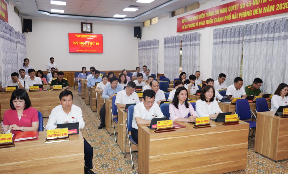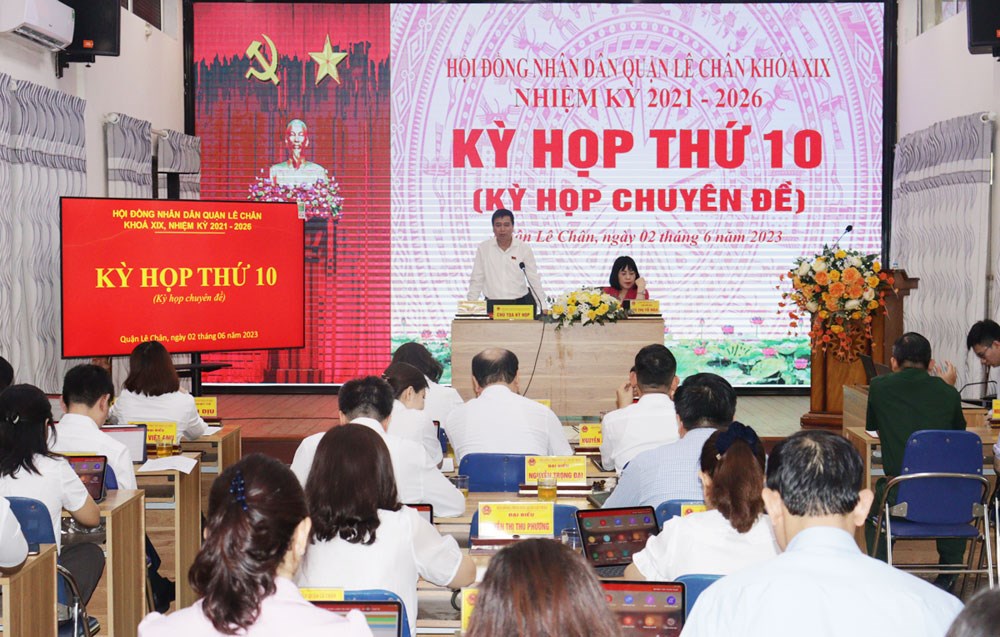 Chiều 2/6, HĐND quận Lê Chân khóa XIX, nhiệm kỳ 2021-2026 tổ chức Kỳ họp thứ 10 (Kỳ họp chuyên đề) xem xét quyết định một số nội dung thuộc thẩm quyền của HĐND quận. Đây là Kỳ họp đầu tiên HĐND quận triển khai vận hành Kỳ họp số-Kỳ họp không giấy tờ theo chỉ đạo của thành phố và quận về nhiệm vụ chuyển đổi số. Dự Kỳ họp có đồng chí Trần Thu Hương, Ủy viên Thành ủy, Bí thư Quận ủy.