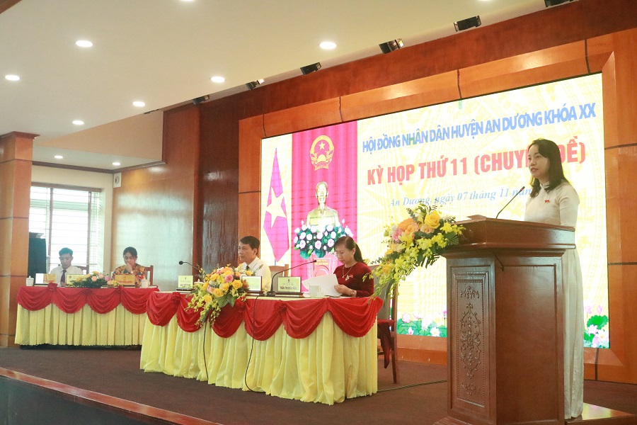 Chiều 7/11, HĐND huyện An Dương khóa 20, nhiệm kỳ 2021-2026 tổ chức kỳ họp thứ 11 (kỳ họp chuyên đề) xem xét, quyết định phê duyệt chủ trương đầu tư, điều chỉnh chủ trương đầu tư đối với một số dự án quan trọng của địa phương nhằm đẩy mạnh hơn nữa việc thực hiện các dự án đầu tư công trên địa bàn huyện. Dự có đồng chí Trần Thị Quỳnh Trang, Thành ủy viên, Bí thư Huyện ủy An Dương.