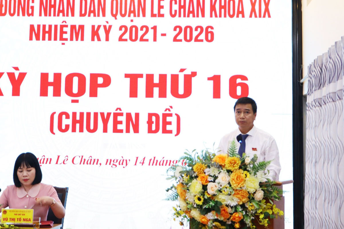 Chiều 14/6, HĐND quận Lê Chân khóa XIX, nhiệm kỳ 2021-2026 tổ chức Kỳ họp thứ 16 (chuyên đề) để xem xét, quyết định một số nội dung thuộc thẩm quyền. Dự Kỳ họp có đồng chí Trần Thu Hương, Ủy viên Thành ủy, Bí thư Quận ủy.