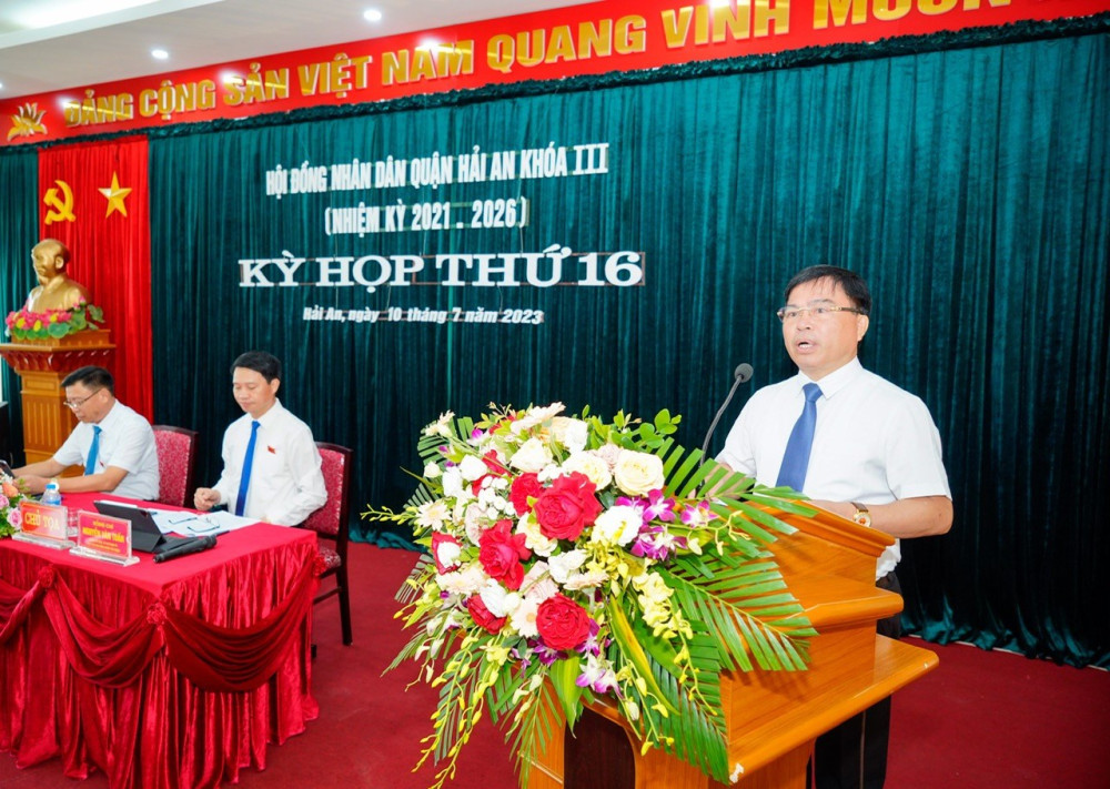 Nhấn mạnh phát biểu khai mạc Kỳ họp, đồng chí Nguyễn Văn Tuấn, Bí thư Quận ủy, Chủ tịch HĐND quận Hải An nêu rõ, 6 tháng cuối năm vẫn còn nhiều khó khăn, thách thức sẽ làm ảnh hưởng không nhỏ tới việc triển khai thực hiện các nhiệm vụ phát triển kinh tế-xã hội quận. Vì vậy, trên cơ sở các báo cáo, tờ trình của UBND quận, báo cáo thẩm tra của các Ban HĐND, Chủ tịch HĐND quận Hải An đề nghị các vị đại biểu nghiên cứu kỹ, tích cực thảo luận, phân tích cụ thể, đánh giá khách quan, toàn diện, thẳng thắn về kết quả đạt được, hạn chế, khó khăn, vướng mắc trong việc thực hiện các nhiệm vụ, chi tiêu KTXH, QP-AN. Đưa ra các giải pháp hữu hiệu để khắc phục những tồn tại hạn chế nhất là trong việc chấn chỉnh tình trạng chấp hành kỷ luật, kỷ cương, né tránh, đùn đẩy, sợ trách nhiệm của một bộ phận cán bộ, công chức trong thực thi công vụ; tăng hiệu quả, hiệu lực trong quản lý đất đai, quản lý đô thị, GPMB, CCHC, chuyển đổi số…