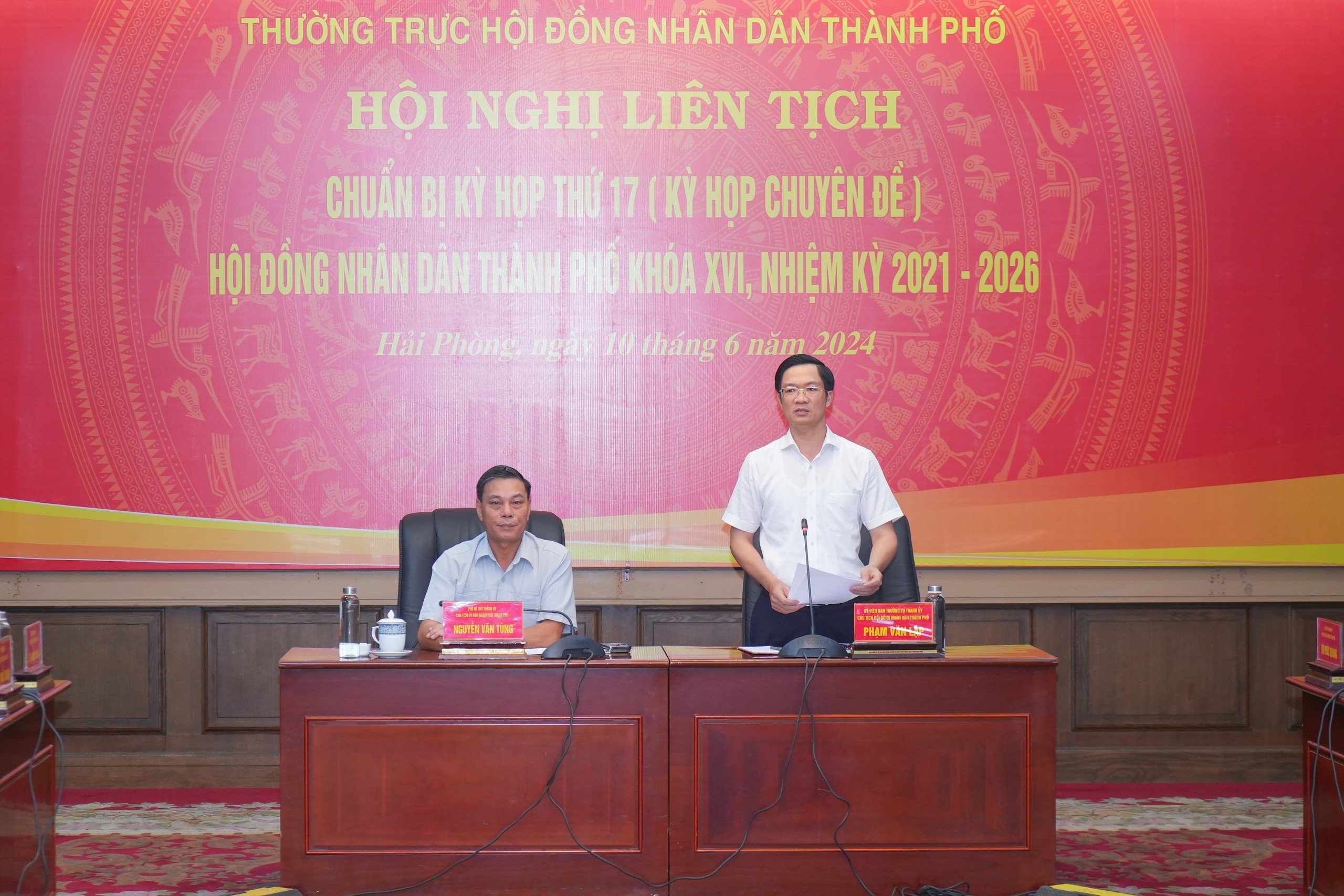 Qua nghe ý kiến và xem xét các nội dung UBND thành phố đề nghị trình tại kỳ họp, phát biểu kết luận cuộc họp, Chủ tịch HĐND thành phố Phạm Văn Lập thống nhất dự kiến trình HĐND thành phố tại kỳ họp thứ 17 (chuyên đề) với 7 nội dung như đề nghị của UBND thành phố; thời gian tổ chức Kỳ họp vào sáng ngày 26/6. Chủ tịch HĐND thành phố đề nghị từ nay đến ngày 12/6, Ban Cán sự Đảng UBND thành phố gửi xin ý kiến Thường trực, Ban Thường vụ Thành ủy các nội dung đề nghị trình tại kỳ họp cũng đồng thời gửi Thường trực HĐND thành phố, trong đó xem xét, giải quyết vấn đề cấp bách, cần thiết nhất là điều chỉnh 4 dự án đất quốc phòng-an ninh phục vụ giải phóng mặt bằng khu đô thị Bắc Sông Cấm. Trong quá trình chuẩn bị hồ sơ dự thảo nghị quyết, các sở, ngành, địa phương, đơn vị liên quan phối hợp chặt chẽ các Ban của HĐND thành phố để cho ý kiến kịp thời. Các nội dung khác, Chủ tịch HĐND thành phố đề nghị các sở, ngành tập trung cao để bảo đảm tiến độ, chất lượng các nội dung trình tại kỳ họp./.