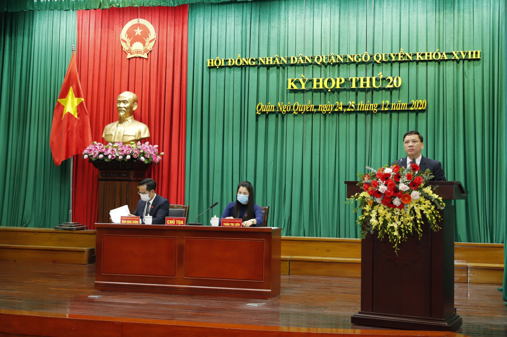 Theo báo cáo của UBND quận Ngô Quyền, năm 2020 quận đã chủ động thực hiện hiệu quả 3 nhiệm vụ trọng tâm; 16 nhiệm vụ cụ thể trong chương trình công tác năm 2020; hoàn thành 13/15 chỉ tiêu phát triển KTXH, quốc phòng an ninh. Các phong trào thi đua yêu nước được phát động mạnh mẽ, sâu rộng tạo không khí thi đua sôi nổi chào mừng Đại hội Đảng các cấp. Tiến độ GPMB một số dự án trên địa bàn đã có những chuyển biến tích cực; các lĩnh vực văn hóa xã hội tiếp tục được quan tâm; chính sách đối với người có công, chính sách an sinh xã hội được thực hiện một cách thiết thực, hiệu quả…
