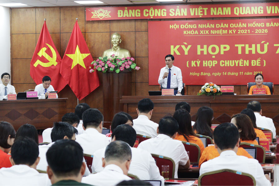 Chiều 14/11, HĐND quận Hồng Bàng khóa XIX tổ chức kỳ họp thứ 7, kỳ họp chuyên đề thứ 3 của nhiệm kỳ 2021-2026 để xem xét, quyết định một số nội dung quan trọng thuộc thẩm quyền. Dự kỳ họp có đồng chí Lê Ngọc Trữ, Ủy viên Ban Thường vụ Thành ủy, Bí thư Quận ủy Hồng Bàng.