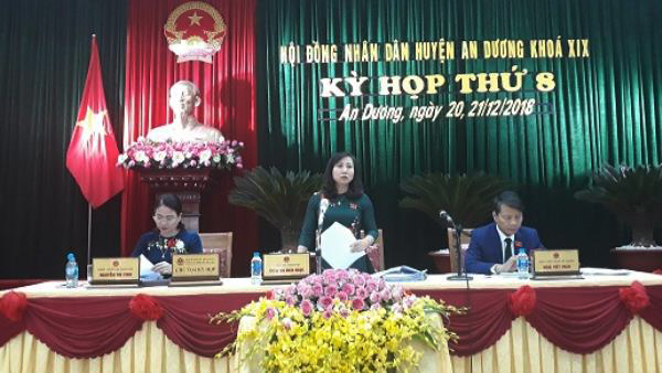Trong 2 ngày 20 – 21/12, HĐND huyện An Dương đã tổ chức kỳ họp thứ 8, HĐND huyện khóa XIX, nhiệm kỳ 2016 – 2021. Kỳ họp nhằm đánh giá kết quả thực hiện nghị quyết của HĐND huyện về thực hiện các chỉ tiêu nhiệm vụ phát triển kinh tế – xã hội, quốc phòng – an ninh năm 2018; bàn và quyết định các chỉ tiêu, nhiệm vụ phát triển kinh tế – xã hội, quốc phòng – an ninh năm 2019 của huyện và bàn một số nội dung quan trọng khác.