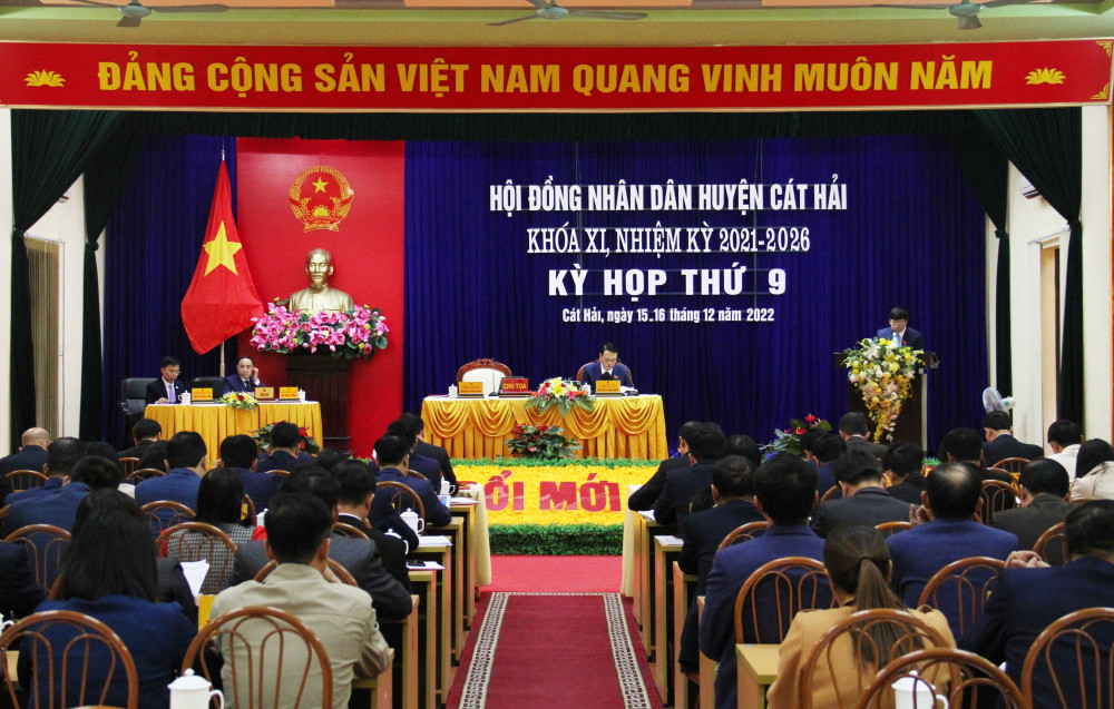 Trong 2 ngày 15 và 16/12, HĐND huyện Cát Hải khoá XI, nhiệm kỳ 2021-2026 tổ chức Kỳ họp thứ 9 để đánh giá toàn diện tình hình thực hiện nhiệm vụ phát triển kinh tế-xã hội năm 2022; quyết định các nhiệm vụ, giải pháp chủ yếu để thực hiện kế hoạch phát triển kinh tế-xã hội năm 2023; đồng thời thông qua một số Nghị quyết quan trọng.