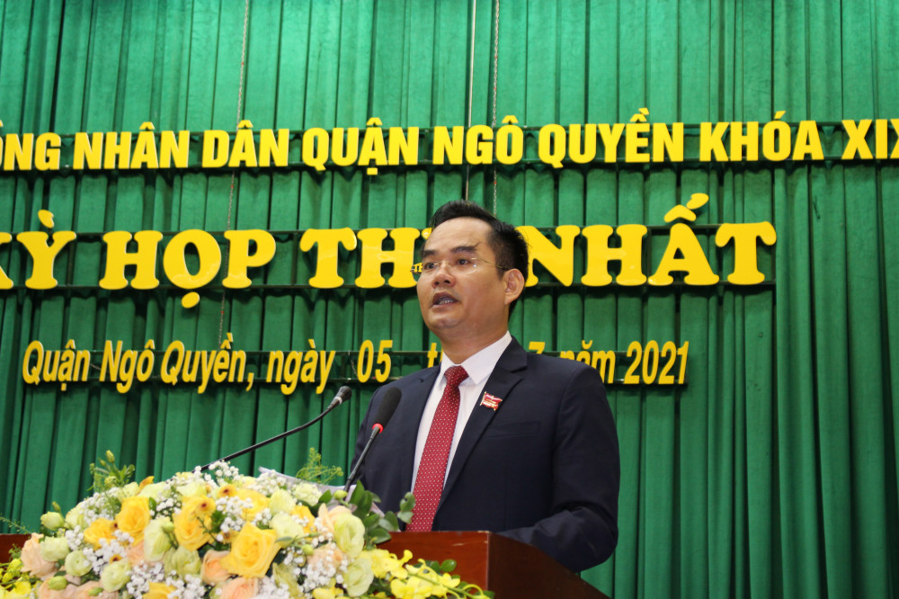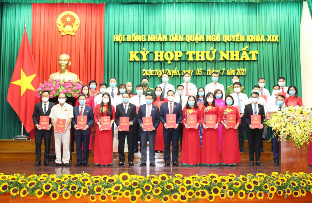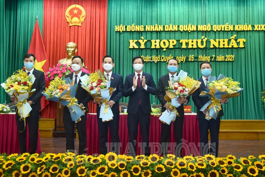Tiếp đó, HĐND quận Ngô Quyền tiến hành bầu các chức danh chủ chốt của HĐND, UBND quận khóa XIX, nhiệm kỳ 2021-2026. Theo đó, đồng chí Trịnh Quang Trường, Phó Bí thư Thường trực Quận ủy, Chủ tịch HĐND quận khóa XVIII tiếp tục được bầu giữ chức Chủ tịch HĐND quận khóa XIX; đồng chí Nguyễn Quốc Thái, Phó Chủ tịch UBND quận khóa XVIII được bầu giữ chức vụ Phó Chủ tịch HĐND quận khóa XIX. Đồng chí Đinh Minh Tuấn, Chủ tịch UBND quận khóa XVIII được bầu giữ chức Chủ tịch UBND quận khóa XIX; các đồng chí Lê Chưởng, Đặng Văn Khởi được bầu giữ chức vụ Phó Chủ tịch UBND quận khóa XIX.