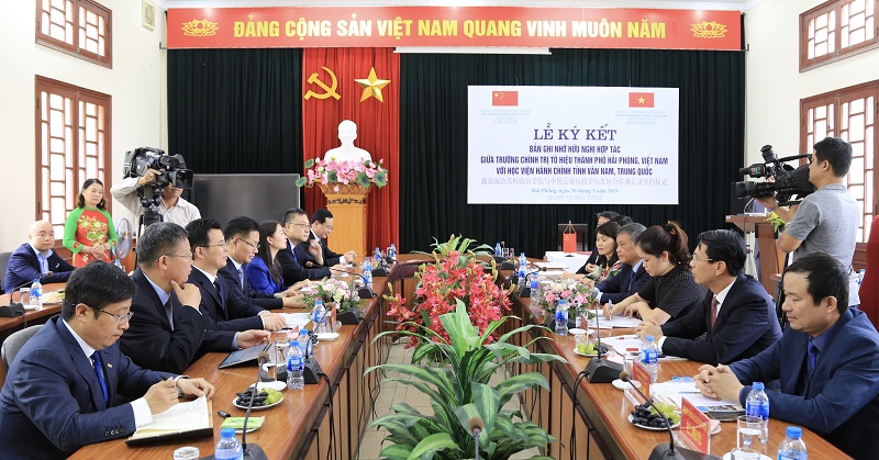 Đại diện trường Chính trị Tô Hiệu thành phố Hải Phòng và Học viện Hành chính tỉnh Vân Nam ký biên bản ghi nhớ hợp tác hữu nghị