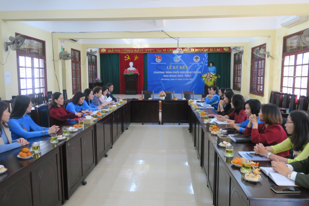 Theo đó, tại chương trình, các đồng chí lãnh đạo Hội Liên hiệp Phụ nữ Hải Phòng và Hội Người cao tuổi đã ký kết Chương trình phối hợp tổ chức hoạt động hỗ trợ phụ nữ cao tuổi giai đoạn 2022-2027; Hội Liên hiệp Phụ nữ Hải Phòng và Đoàn TNCS Hồ Chí Minh thành phố Hải Phòng đã ký kết Chương trình phối hợp tổ chức các hoạt động trong nữ thanh niên giai đoạn 2022-2027.
