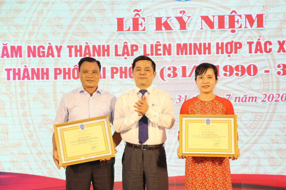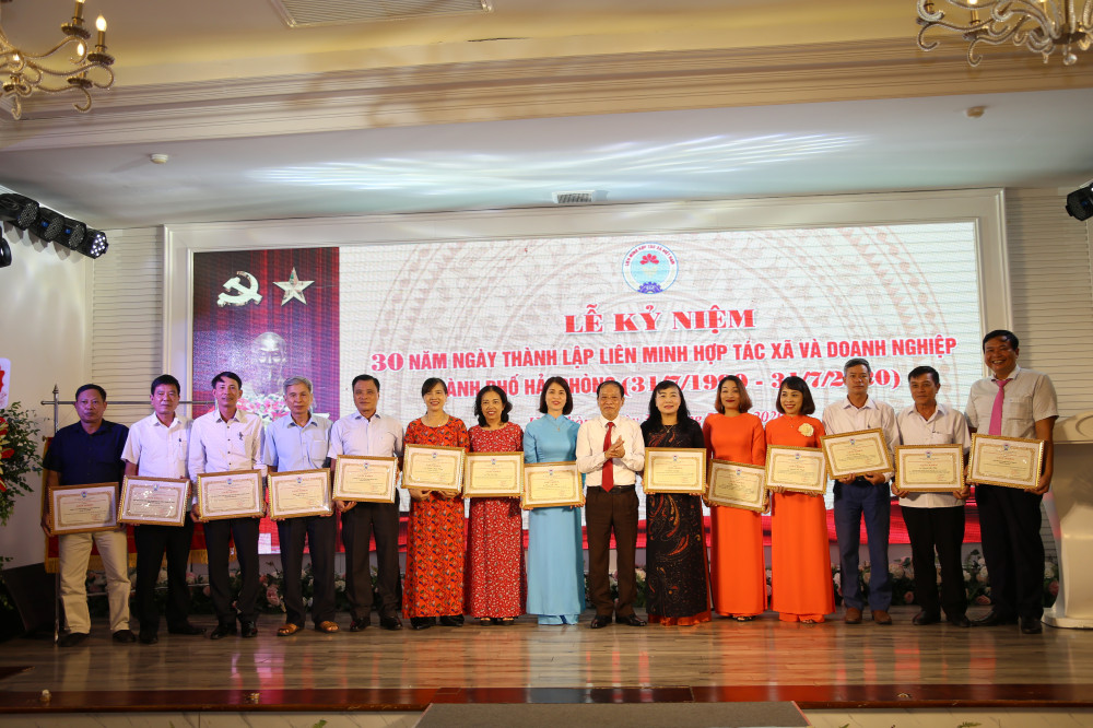 Nhân dịp này, Liên minh HTX và Doanh nghiệp được Thành ủy, HĐND, UBND thành phố trao tặng Bức trướng với nội dung “30 năm đổi mới, hợp tác, phát triển bền vững”; Tặng Cờ thi đua của UBND thành phố cho 2 tập thể; Tặng Danh hiệu Tập thể lao động xuất sắc cho 2 tập thể; Bằng Khen của Chủ tịch UBND thành phố cho 3 tập thể và 6 cá nhân; Bằng khen của Ban Chấp hành Liên minh HTX Việt Nam cho 1 tập thể và 2 cá nhân; Tặng Kỷ niệm chương vì sự nghiệp phát triển HTX cho 6 cá nhân; Giấy khen của Chủ tịch Liên minh HTX và Doanh nghiệp thành phố cho 16 tập thể và 20 cá nhân.