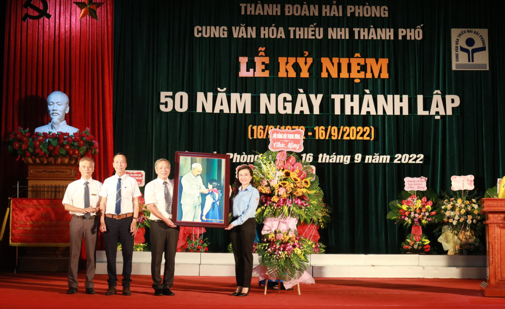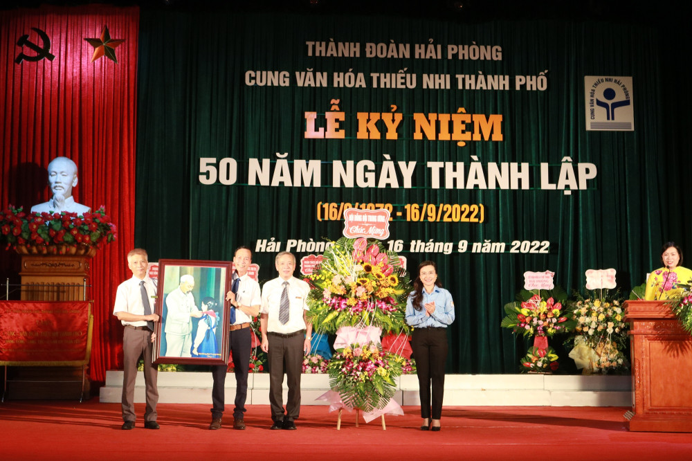 Nhân dịp này, nhằm ghi nhận những thành tích, cống hiến và đóng góp của các thế hệ lãnh đạo, cán bộ, công nhân viên của đơn vị suốt 50 năm qua, đồng thời cổ vũ, động viên Cung Văn hóa thiếu nhi thành phố tiếp tục hoàn thành xuất sắc các nhiệm vụ trong thời gian tới; UBND TP đã trao tặng bức trướng với nội dung: “Cung Văn hóa thiếu nhi thành phố-Năng động, sáng tạo, Vì đàn em thân yêu”.