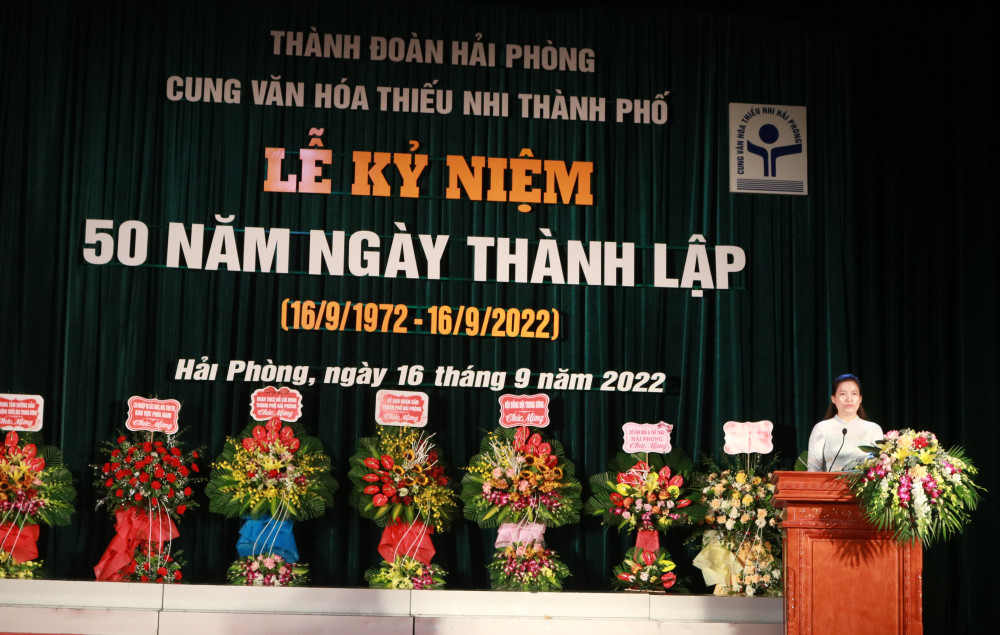 Phát biểu chỉ đạo tại lễ kỷ niệm, Bí thư Thành đoàn Vương Toàn Thu Thủy ghi nhận, chúc mừng những thành tích mà Cung Văn hóa thiếu nhi Hải Phòng đạt được trong thời gian qua.