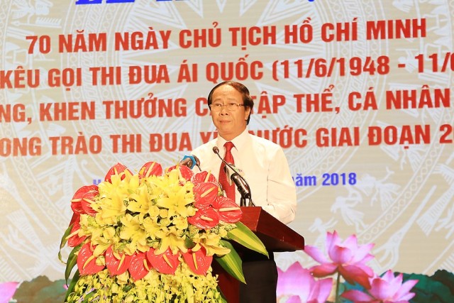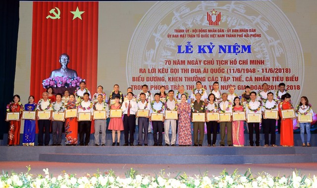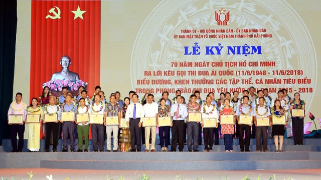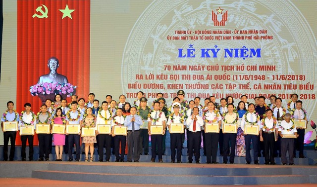 Phát biểu chỉ đạo tại lễ kỷ niệm, đồng chí Bí thư Thành ủy Lê Văn Thành nhấn mạnh, lễ kỷ niệm 70 năm Ngày Chủ tịch Hồ Chí Minh ra lời kêu gọi thi đua ái quốc với sự có mặt của gần 1000 đại biểu, đại diện các tầng lớp nhân dân thành phố, những người đang hằng ngày, hằng giờ hăng say lao động sản xuất, công tác, cống hiến cho sự nghiệp xây dựng, phát triển thành phố, chính là biểu hiện sinh động của phong trào thi đua yêu nước sôi nổi trên toàn thành phố trong thời kỳ mới. Đồng chí Bí thư Thành ủy khẳng định, chính từ các phong trào thi đua yêu nước, kinh tế-xã hội thành phố phát triển vượt bậc, Hải Phòng trở thành một trong những điểm sáng về phát triển kinh tế xã hội của cả nước, sự nghiệp CNH-HĐH thành phố đang dần trở thành hiện thực. Những phong trào thi đua thời kỳ mới được nâng cao về tính hiệu quả, thiết thực; từng ngành, lĩnh vực, từng khu vực dân cư đều xuất hiện những điển hình tiêu biểu, những tấm gương tận tụy, hết lòng vì sự nghiệp xây dựng quê hương. Trong đó, nổi bật trên các lĩnh vực: thu hút đầu tư, xây dựng kết cấu hạ tầng giao thông, hạ tầng đô thị; thực hiện chương trình mục tiêu quốc gia xây dựng nông thôn mới, xây dựng văn minh đô thị và ở các lĩnh vực văn hóa, thể thao, y tế, giáo dục…