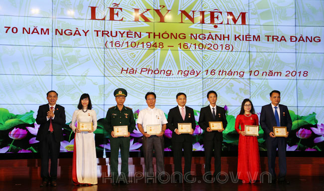 Ban Thường vụ Thành ủy tặng Bức trướng của Ban Chấp hành Đảng bộ thành phố Hải Phòng cho Ngành Kiểm tra Đảng với nội dung: “Đoàn kết – Trung thành – Tận tụy – Kỷ cương – Liêm khiết” nhân dịp kỷ niệm 70 năm Ngày truyền thống Ngành Kiểm tra Đảng. 6 tập thể và 6 cá nhân được nhận Bằng khen của Chủ tịch UBND thành phố đã có thành tích xuất sắc trong công tác kiểm tra, giám sát và thi hành kỷ luật đảng nhân dịp kỷ niệm 70 năm Ngày truyền thống Ngành Kiểm tra Đảng.